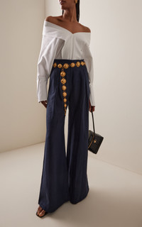The Colombian designer draws inspiration from the lush, green landscapes of his home country’s tropical paradise. His goal? To mirror the vibrancy of the natural world through carefully designed pieces made from high-quality fabrics. The 'Una Metafora' is a linen high-rise wide leg pants that features pleated detailing by the waist. PRODUCT DETAILS - Pre-Fall '25 - Concealed zip fastening - Composition: 100% linen - Dry clean only - Made in Colombia SIZE & FIT - Model is wearing a size 4