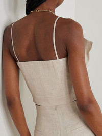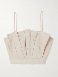 Andres Otalora's 'Amapolas' top has been made by local craftswomen in Colombia. It's cut in a bustier profile from certified linen and pleated in wide folds to create an accordion shape. The barely-there straps highlight your shoulders and collarbones. Lower-Impact Materials. This product is made using at least 50% lower-impact materials or ingredients. Responsible Craftsmanship. This product promotes artisanal skills and a brand that invests in communities and adheres to fair-trade principles. Find out more about our NET SUSTAIN criteria here. Size & Fit - Fits true to size, take your normal size - Designed for a close fit - Mid-weight, non-stretchy fabric - Model is 180cm/ 5'11" and is wearing a size XSmall Model measurements: - Bust: 80cm/ 31.5" - Waist: 65cm/ 25.5" - Hip: 89cm/ 35" Details & Care - Beige linen - Zip fastening through side - 100% linen; lining: 100% cotton - Fully lined - Dry clean - Designer color: Oatmeal