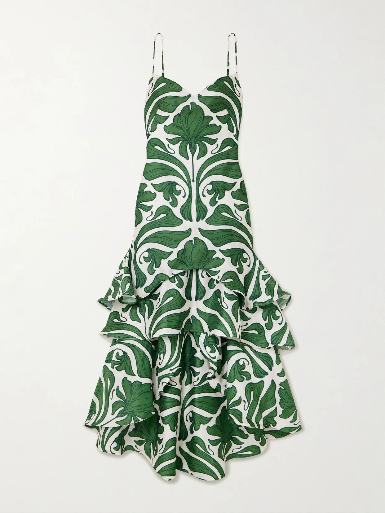 EXCLUSIVE AT NET-A-PORTER. Andres Otalora's designs bring an element of Latin American charm to your wardrobe. This ‘Arte Cubano' dress is made from crepe, featuring a bold leaf pattern and a voluminous tiered skirt.