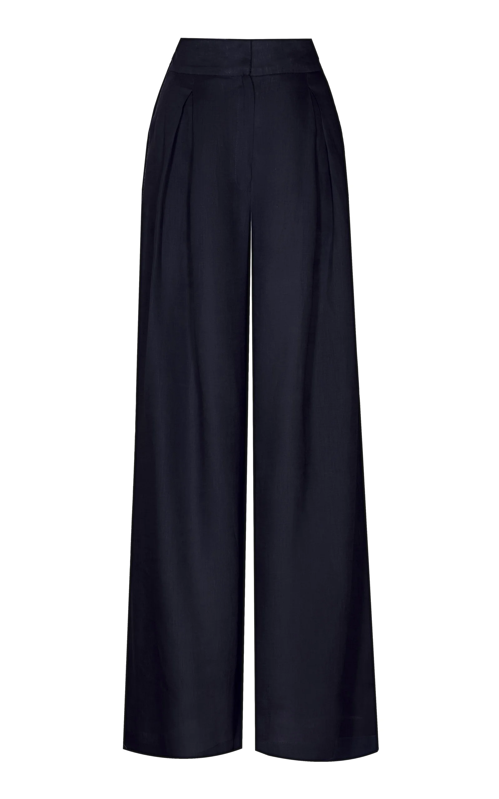 The Colombian designer draws inspiration from the lush, green landscapes of his home country’s tropical paradise. His goal? To mirror the vibrancy of the natural world through carefully designed pieces made from high-quality fabrics. These ‘Desperte’ pants are tailored with a pleated high waist and generous wide leg from navy blue linen. Style for the evening with the label’s ‘Marea’ top and leather sandals. PRODUCT DETAILS - Resort '26 - Zipper fastening - Composition: 100% Linen - Dry Clean - Imported
