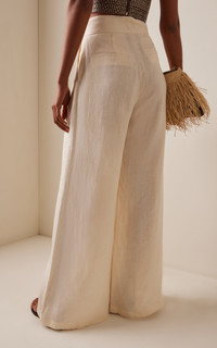 Desperte Pleated Linen Wide-Leg Pants neutral