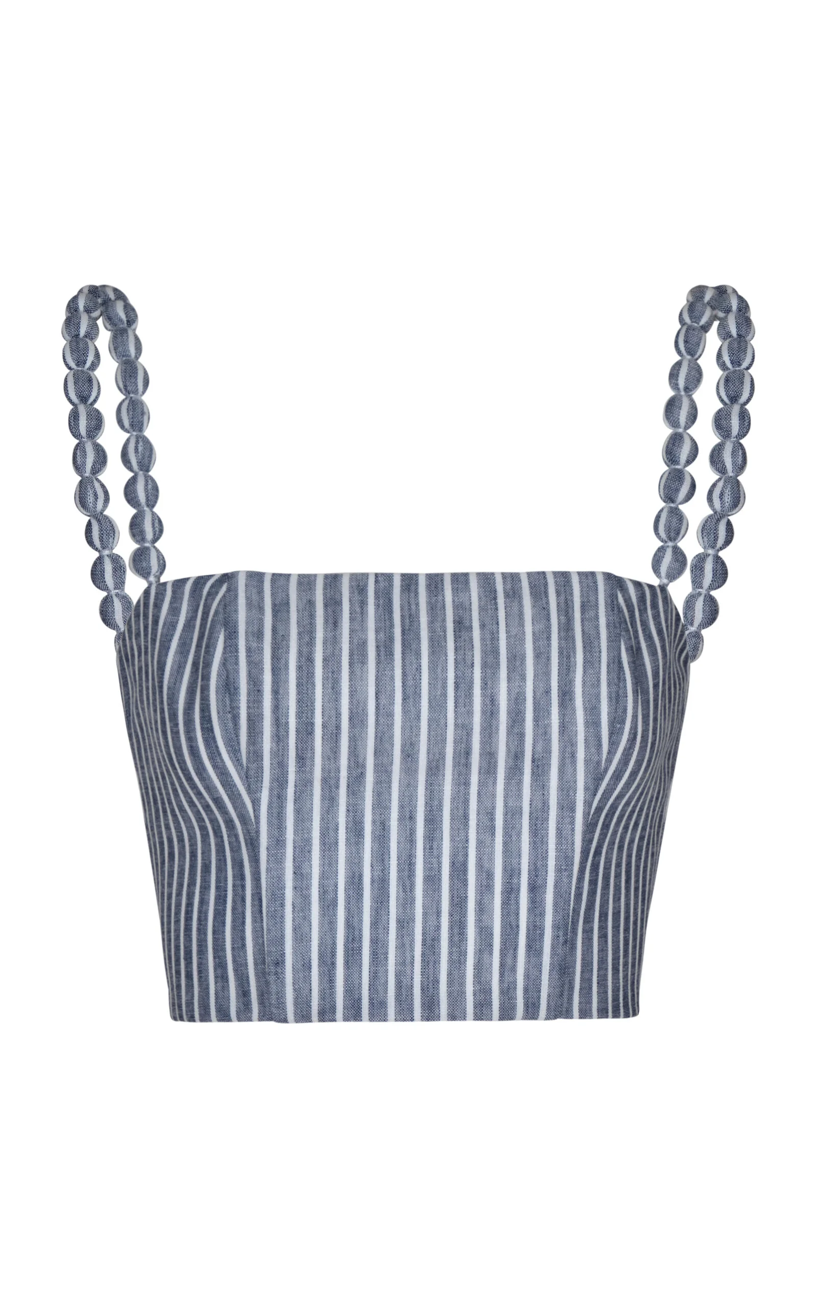 The Colombian designer draws inspiration from the lush, green landscapes of his home country’s tropical paradise. His goal? To mirror the vibrancy of the natural world through carefully designed pieces made from high-quality fabrics. Bearing the label’s signature embellished straps, ‘Esperame’ is a fitted cropped top with a flattering square neckline. The style falls to the waist, meeting its striped counterpart in the middle. PRODUCT DETAILS - Resort '26 - Zipper fastening - Composition: 90% polyester, 10% cotton - Dry Clean Only - Imported