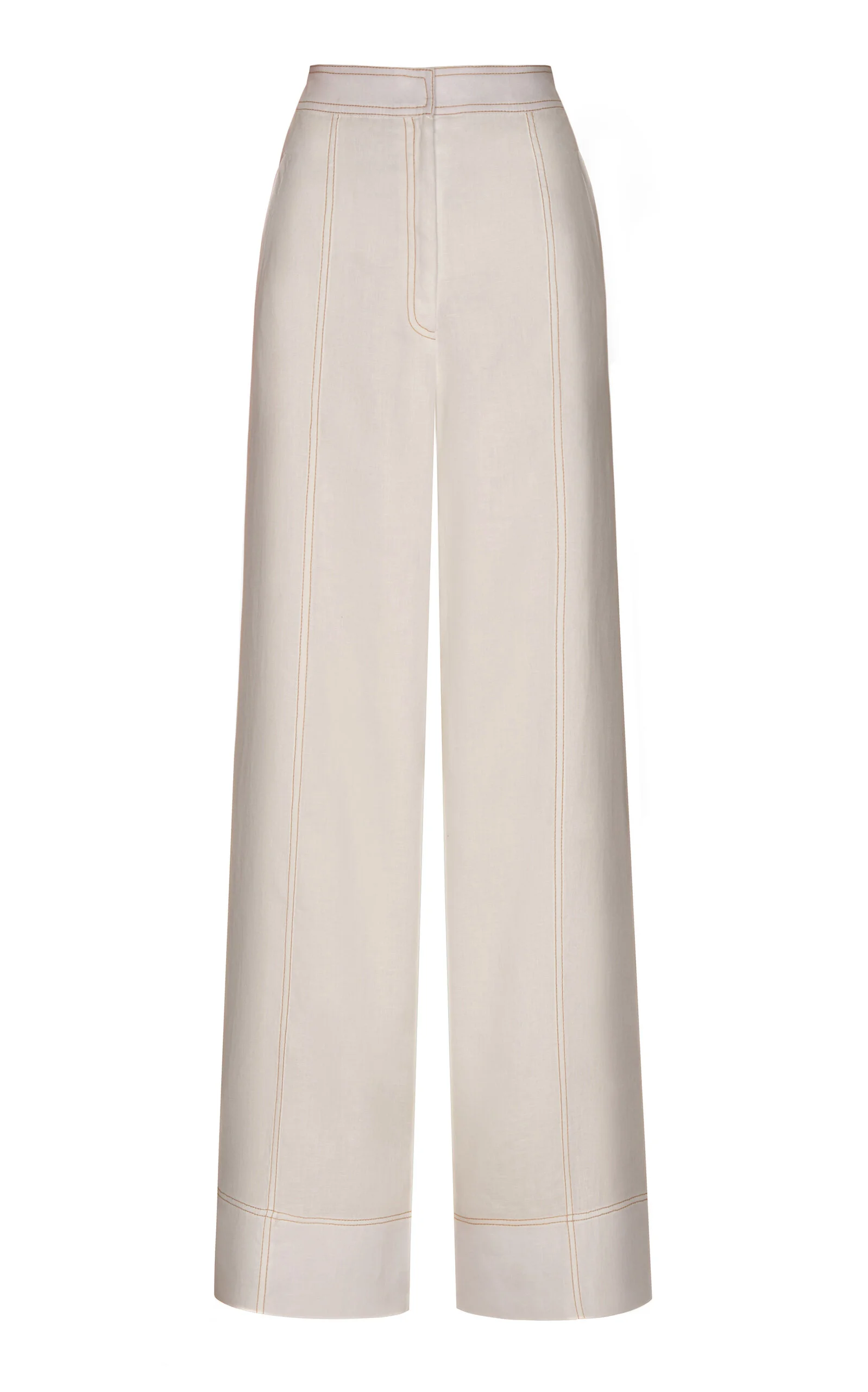 PRODUCT DETAILS - Regular fit, high rise, wide leg silhouette - Button and Zip Closure - Lined - Composition: 100% Linen - Color: white - Dry Clean Only - Fall-Winter '25