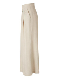 high-waist flared trousers Highlights - Oatmeal beige - Side pockets - High waist - Flared hem - Front zip fastening Imported Composition Linen/Flax 100% Washing instructions Read Manufacturer Guidelines