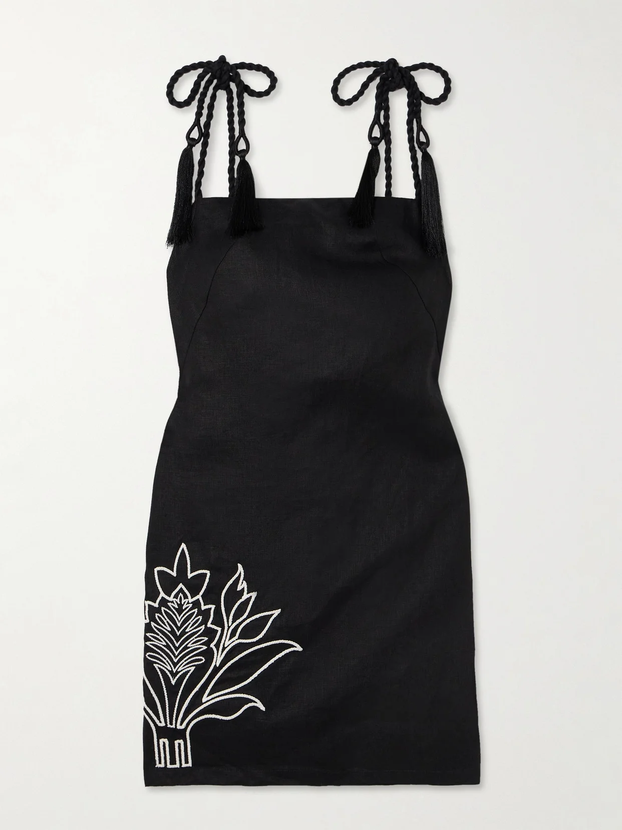 Haath Tasseled Embroidered Linen Mini Dress