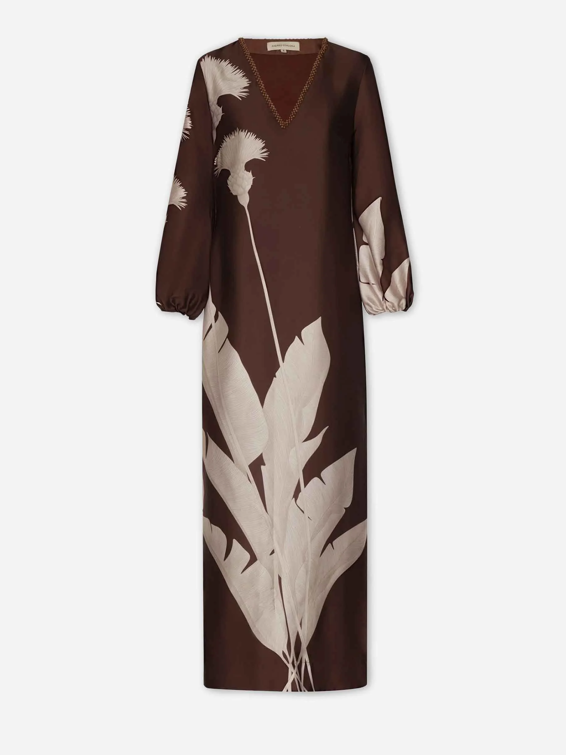 SKU: 732-001656 01 BRAND ID: RT26076-1 Dress By Andres Otalora • Maxi dress • Loose fit • Made from viscose fabric • Contrasting botanical print • Long sleeve • Elastic cuffs • Composition: 51% Ecovero Viscose. 49% Viscose • Made in: Colombia