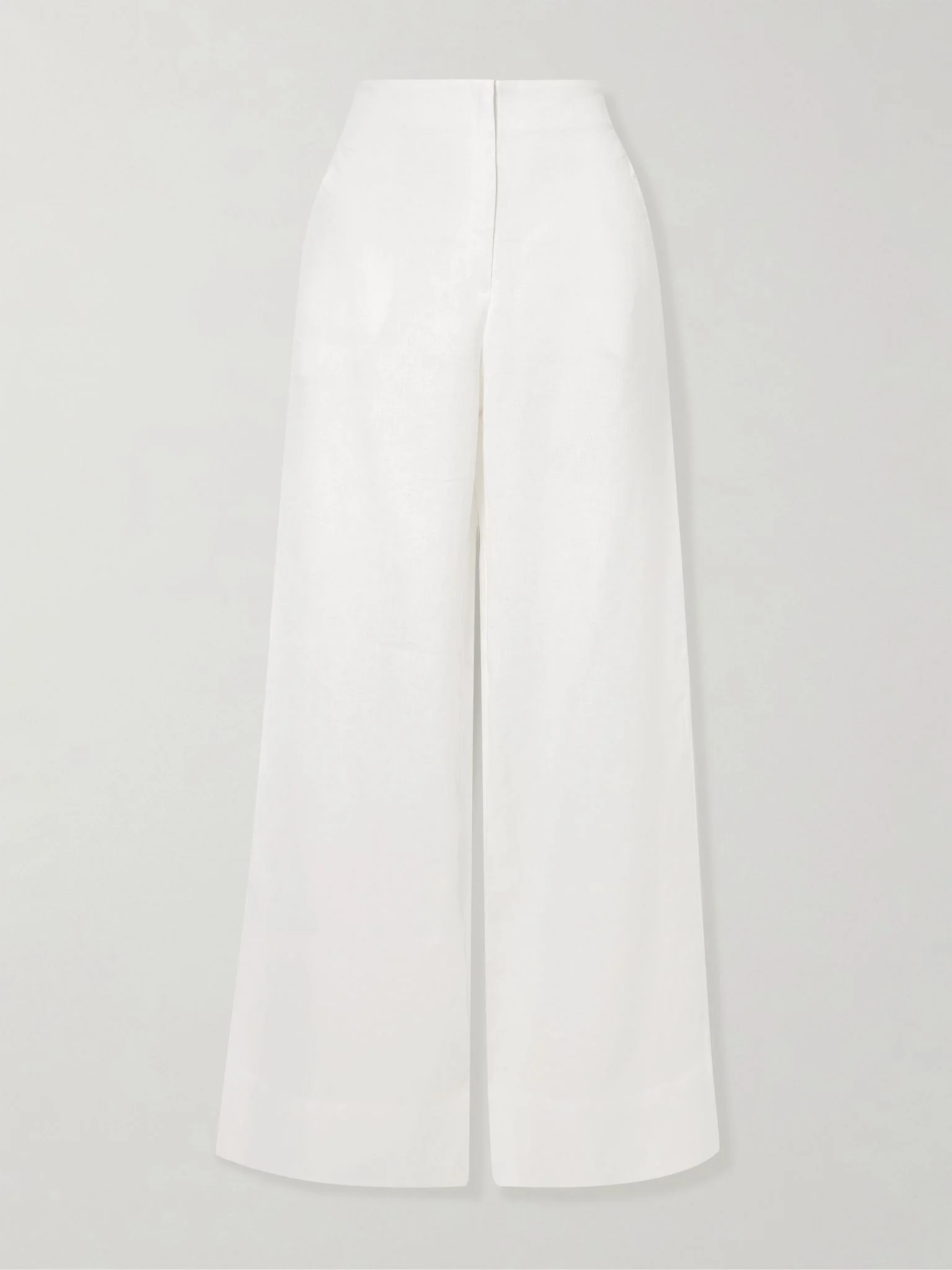 Inspired by Colombia's climate, Andres Otalora's 'Me Hablas' pants are cut from breathable linen, making them the perfect choice for warm days. They have a waist-defining high rise and wide legs. Wear yours with one of the label's sculptural tops. Size & Fit - Fits true to size, however those who are between sizes should take the smaller size - High-rise, designed for a wide-leg fit - Lightweight, non-stretchy fabric - Model is 177cm/ 5'10" and is wearing a US 2 Model measurements: - Bust: 77cm/ 30.5" - Waist: 62cm/ 24.5" - Hip: 88cm/ 34.5" Details & Care - Beige linen - Concealed button and zip fastening at front - 100% linen - Designer colour: Oatmeal