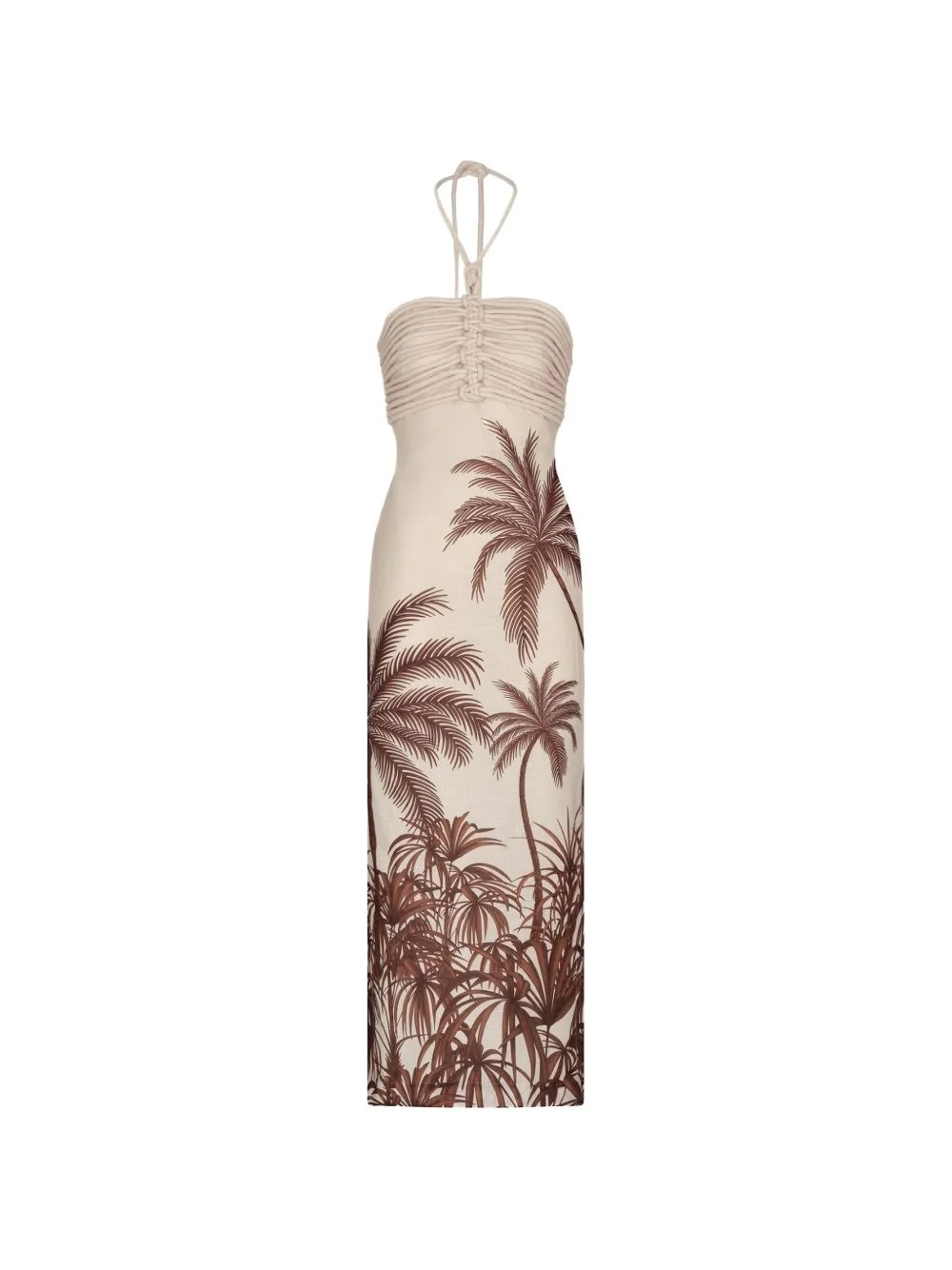 ruched print midi dress Highlights - Beige and brown - Print - Sleeveless - Halterneck - Gathered detailing Imported Composition Linen/Flax 100% Washing instructions Read Manufacturer Guidelines