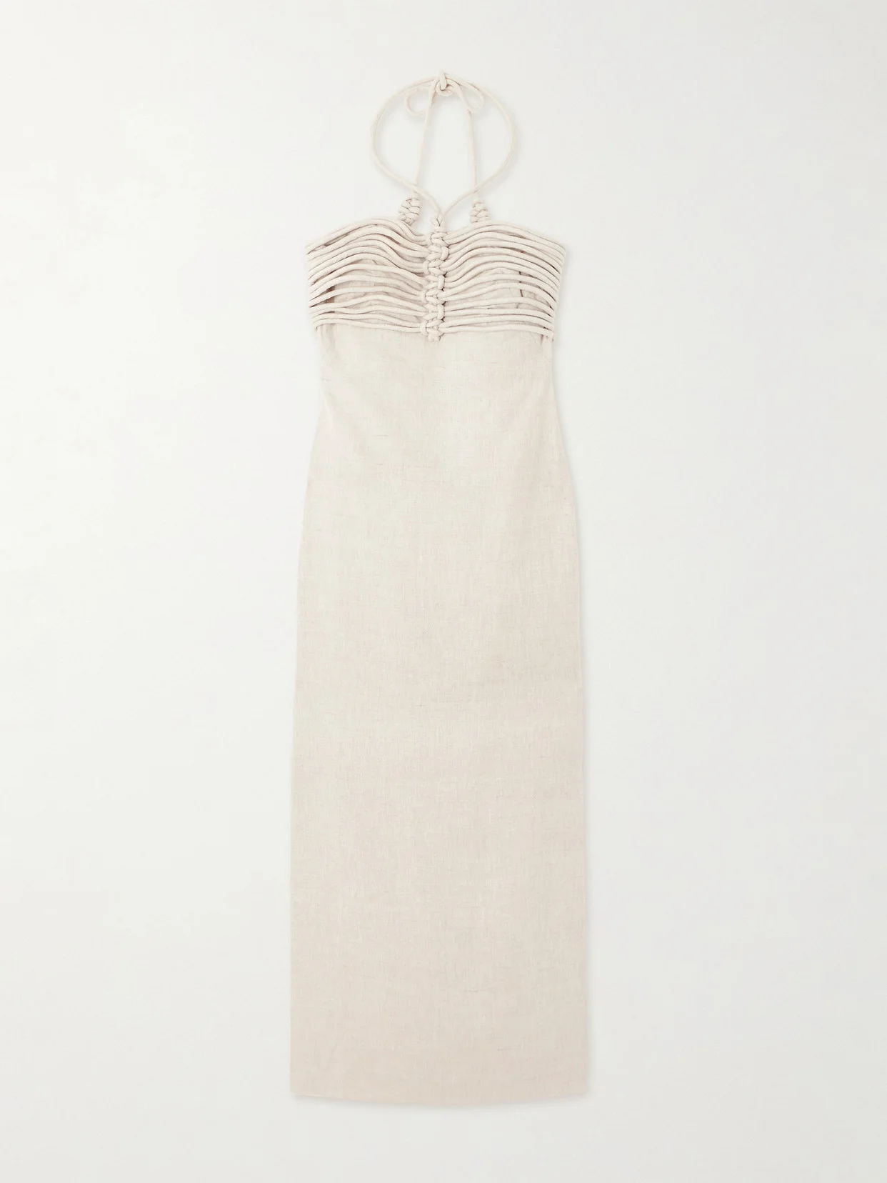 Andres Otalora's designs are brought to life in the label's Colombian atelier by a team of local women. This midi dress is cut from breathable linen and has a corded bodice and knots at the front and straps.