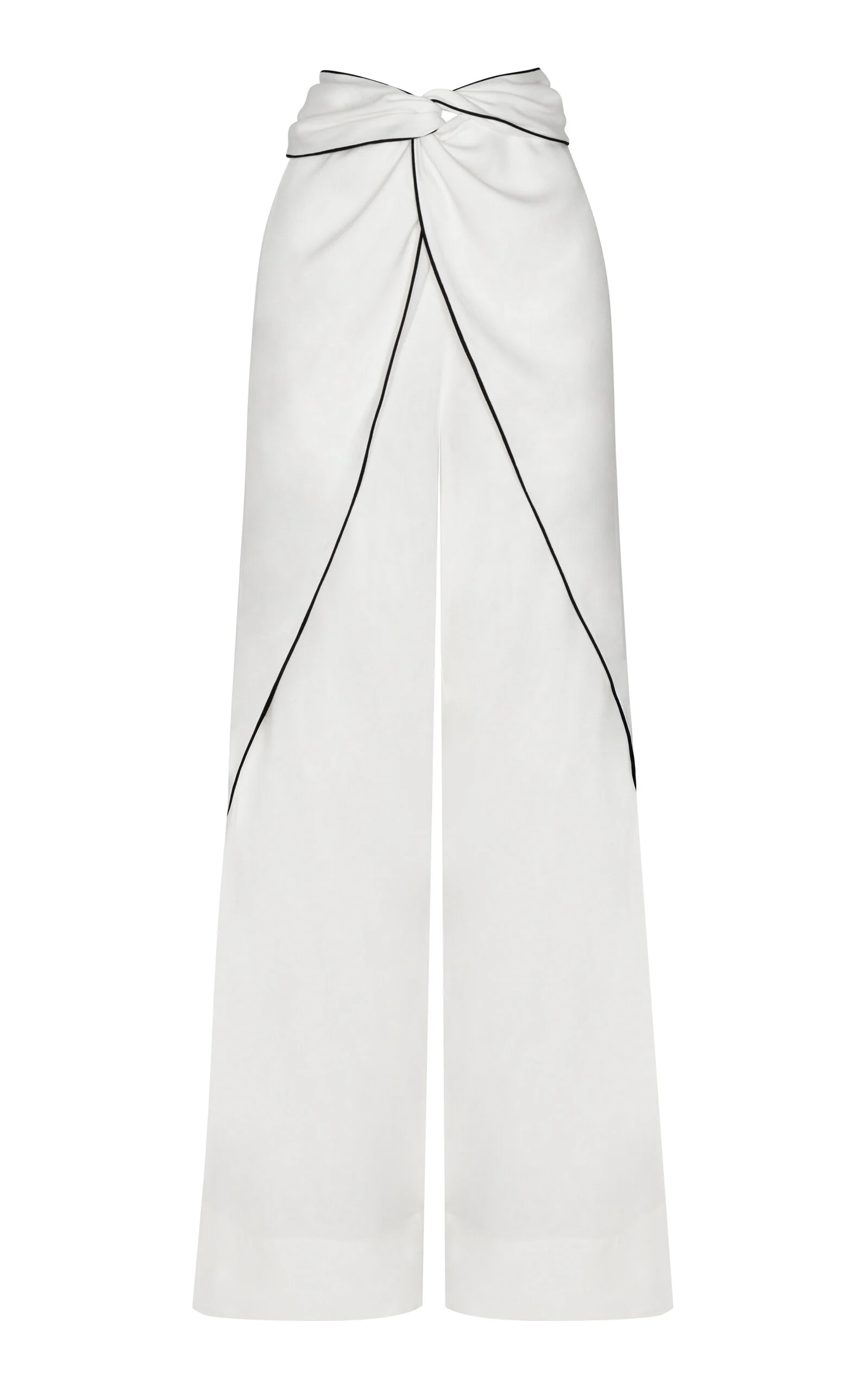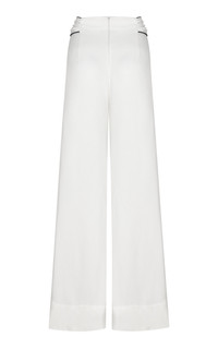 PRODUCT DETAILS - Slim fit, high rise, with draped and flap detailing by the front, wide leg silhouette - Button and Zip Closure - Lined - Composition: 100% Rayon - Color: white - Dry Clean Only - Fall-Winter '25