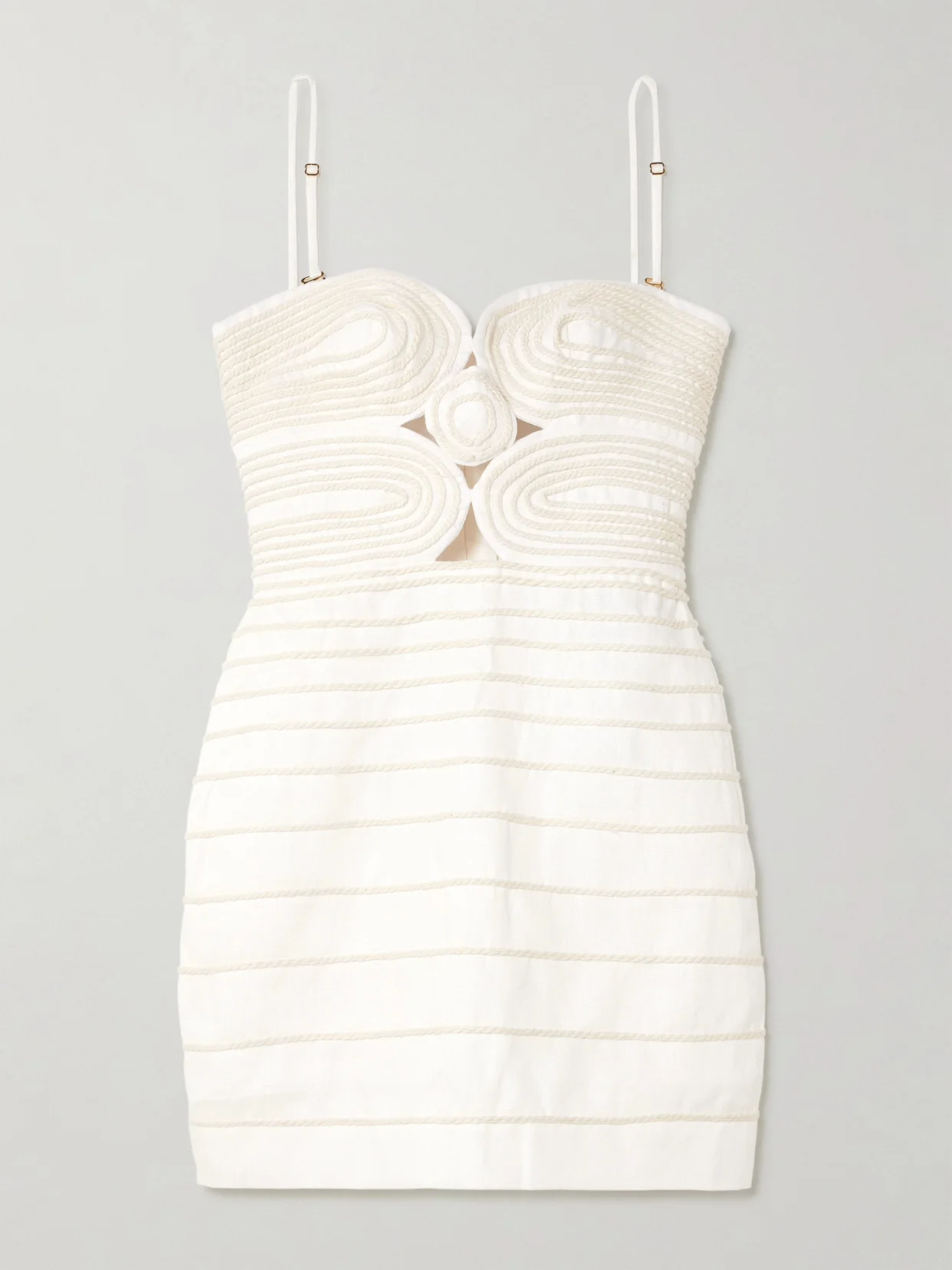 EXCLUSIVE AT NET-A-PORTER. Andres Otalora draws from his Colombian heritage when dreaming up sculptural designs. Made in the brand's women-run atelier, this certified linen mini dress is traced with swirling strands of rope, accentuating its form-fitting shape. It has little cutouts on the bodice with boning on the side for additional support. Lower-Impact Materials. This product is made using at least 50% lower-impact materials or ingredients. Find out more about our NET SUSTAIN criteria here.
