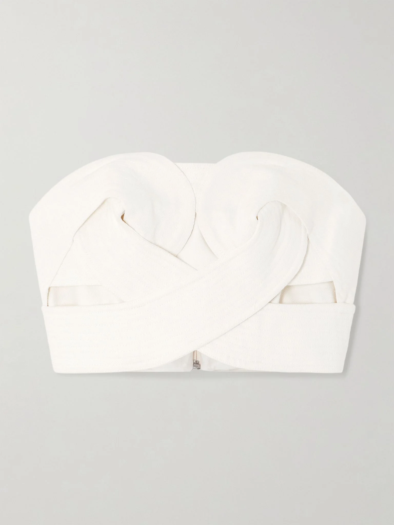 Onda strapless cropped twisted cotton-twill top Off-white