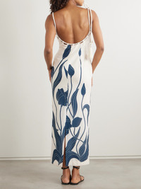 Andres Otalora's 'Pasos De Jardin' dress is a beautiful example of the label's meticulous attention to detail. Made from airy linen, it has a square neckline and easy column silhouette. It features a winding tulip print and tasseled tie at one shoulder.