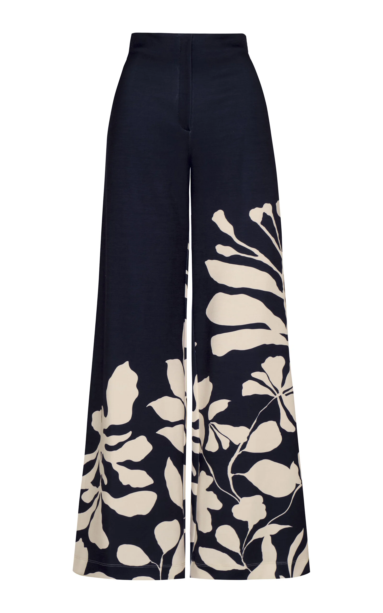 Preferida Botanical Linen-Blend Wide-Leg Pants navy