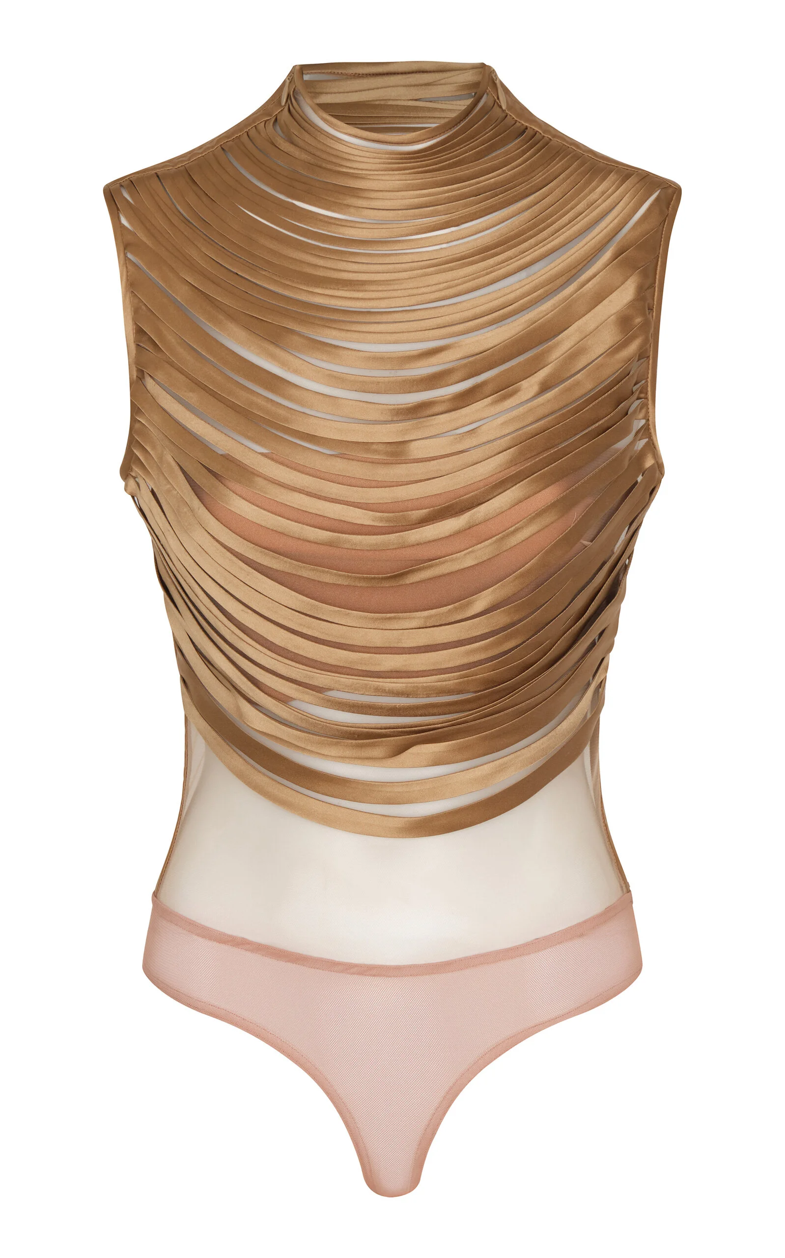 The Colombian designer draws inspiration from the lush, green landscapes of his home country’s tropical paradise. His goal? To mirror the vibrancy of the natural world through carefully designed pieces made from high-quality fabrics. Designed for a second-skin fit, the ‘Pulsos’ bodysuit is cut from lightweight silk charmeuse with layered draping across the front and an open back. Pair it with a silk skirt or fluid trousers. PRODUCT DETAILS - Fall-Winter '25 - Zip Closure Through Back - Lined - Composition: Charmeuse 100% Silk - Dry Clean Only - Color: gold - Made in Colombia SIZE & FIT - Our model is wearing a size 2 - Model is 5'11" with a 33" bust, 25" waist, and 34.5" hip