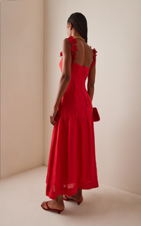 The Colombian designer draws inspiration from the lush, green landscapes of his home country’s tropical paradise. His goal? To mirror the vibrancy of the natural world through carefully designed pieces made from high-quality fabrics. This drop-waist maxi has a fitted bodice, subtly distinguished by braided cups, followed by a circular ankle-length skirt. Around the straps, the label applies floral applique, referencing natural themes. Play around with similar hues when selecting your accessories. PRODUCT DETAILS - Resort '26 - Zipper fastening - Composition: 100% Linen - Dry Clean - Imported
