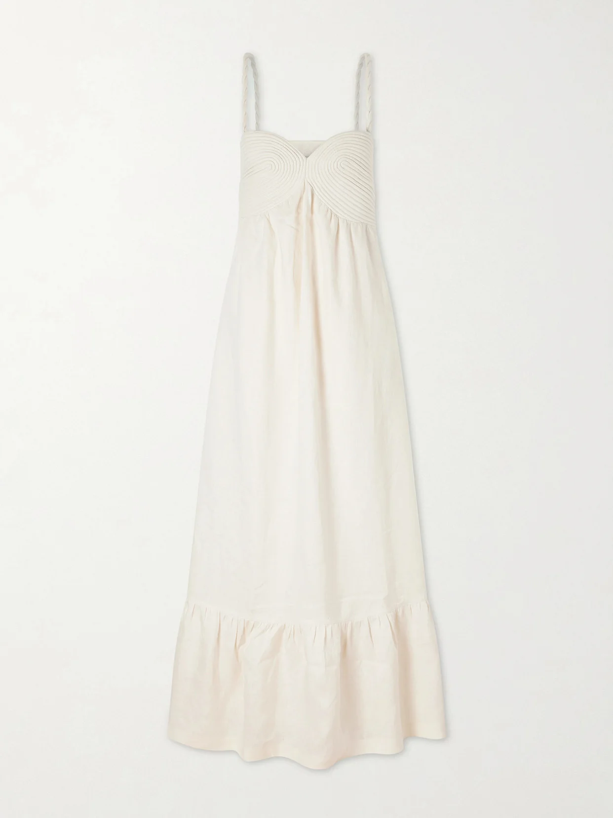 Andres Otalora's designs draw inspiration from his Colombian heritage. The ‘Tu Esencia' maxi dress is crafted from lightweight linen, featuring a fitted bodice, embroidered with concentric curves, that flows into a maxi skirt finished with a slightly ruffled tier. Pair it with high heels and bold accessories for a polished, sophisticated look.