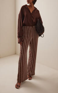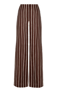 The Colombian designer draws inspiration from the lush, green landscapes of his home country’s tropical paradise. His goal? To mirror the vibrancy of the natural world through carefully designed pieces made from high-quality fabrics. This version of ‘Tuyo’ is rendered from striped linen in a warm brown hue. It retains its clean waistline, sitting high on the waist, and casual wide-cut leg. Wear with a crisp cotton or linen shirt. PRODUCT DETAILS - Resort '26 - Zipper fastening - Composition: 100% Linen - Designer color: Mocha - Dry Clean - Imported