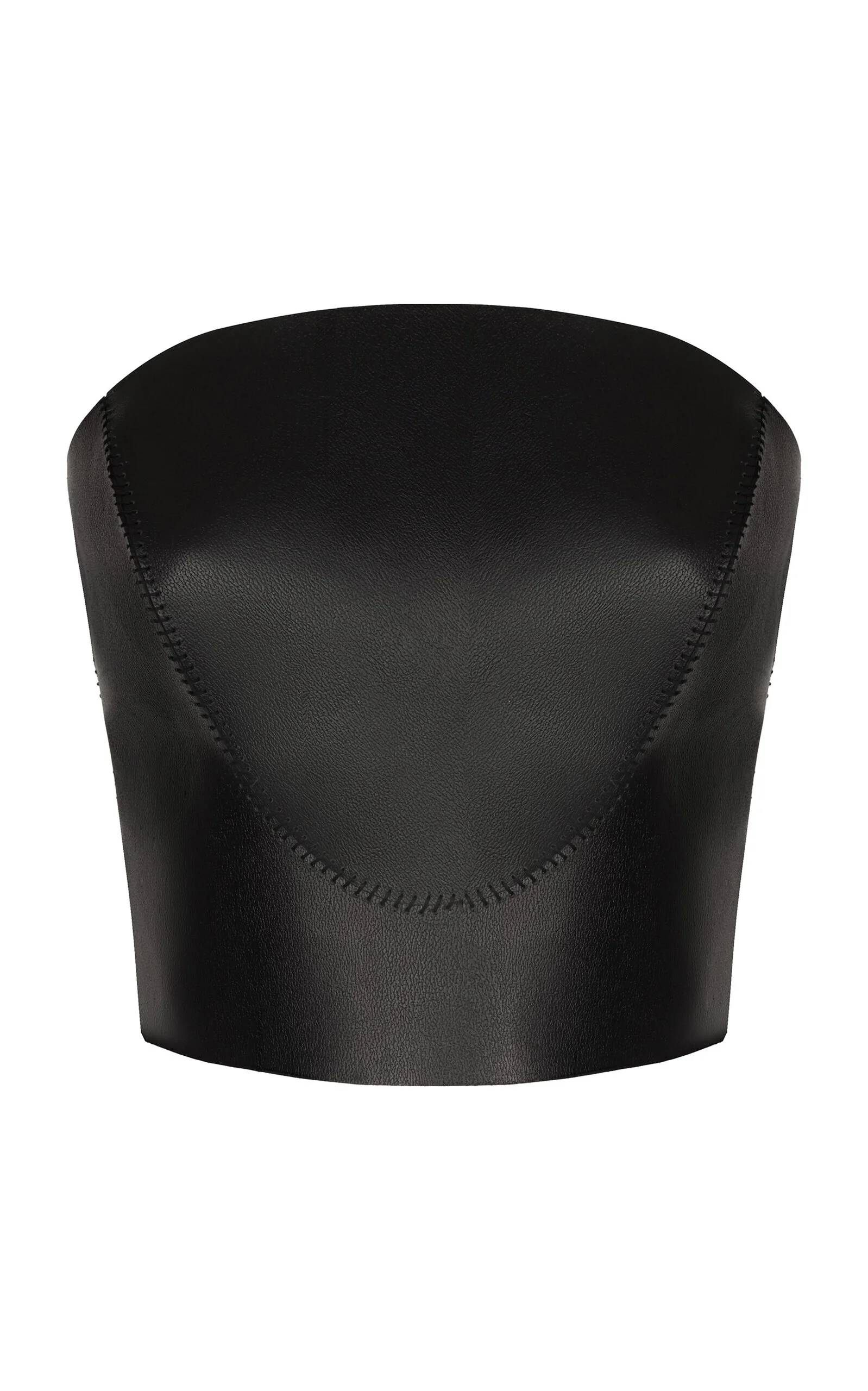 PRODUCT DETAILS - Slim fit, strapless, cropped silhouette - Zip Closure Through Back - Lined - Composition: 100% Leather - Color: black - Dry Clean Only - Fall-Winter '25