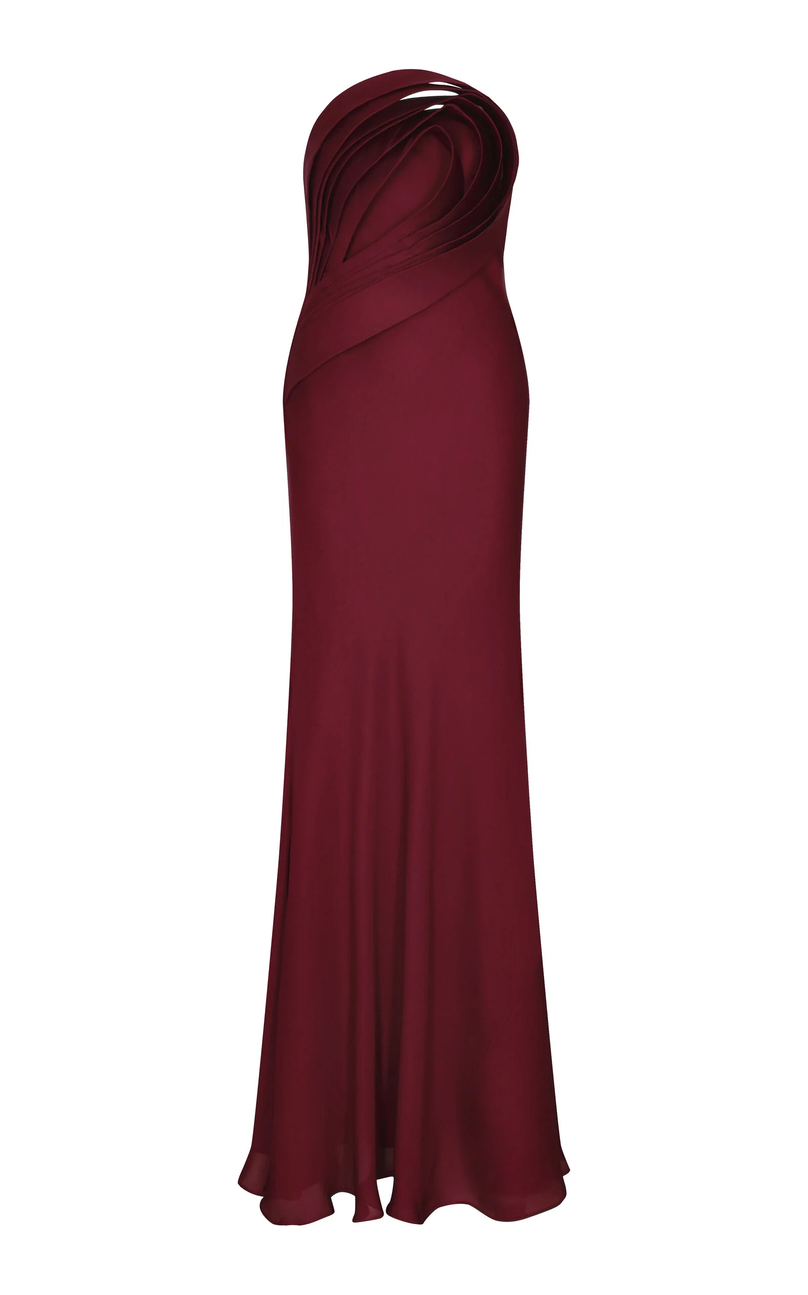 Vida Entera Strapless Georgette-Silk Maxi Dress burgundy