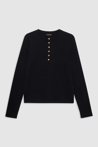 The Alessia Long Sleeve Tee is a modern Henley made from a heavyweight cotton-spandex blend with an all-over ribbed texture and a soft hand. This elevated basic features a high crew neckline and gold monogram snap buttons along the front placket. The Alessia Long Sleeve Tee is cut for a relaxed fit. Take your true size. FIT + MEASUREMENTS The Alessia Long Sleeve Tee is cut for a relaxed fit. Take your true size. Model is wearing a size S. Model Measurements: Height: 5'9.5", Bust: 29.5", Waist: 23", Hips: 34.5" Product Measurements (Size S): Length: 23", Bust: 17.5", Sleeve Length from Center Back: 32.5" MATERIAL + CARE 95% Cotton, 5% Spandex Machine wash Made in Turkiye