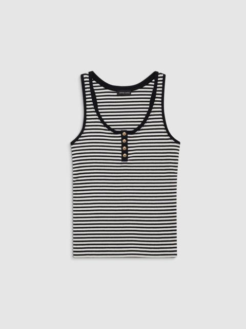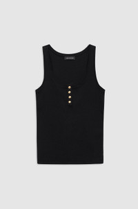 A modern, Henley-inspired tank top made from a heavyweight cotton-spandex blend with an all-over ribbed texture and a soft hand. This elevated basic features a round neckline and gold monogram snap buttons along the front placket. The Alessia Tank is cut for a relaxed fit. Take your true size. FIT + MEASUREMENTS The Alessia Tank is cut for a relaxed fit. Take your true size. Model is wearing a size S. Model Measurements: Height: 5'9.5", Bust: 29.5", Waist: 23", Hips: 34.5" Product Measurements (Size S): Length: 23.3", Bust: 13.5" MATERIAL + CARE 95% Cotton, 5% Spandex Machine wash Made in Turkiye