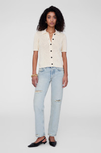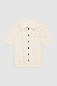 The Alexis Sweater is made from an organic cotton-viscose crocheted fabrication in cream. This versatile separate features a tailored collar and faux horn buttons down its center-front placket. FIT + MEASUREMENTS The Alexis Sweater is cut for a slim fit. Take your true size. Model is wearing a size S. Model Measurements: Height: 5'9", Bust: 32.5", Waist: 22.5", Hips: 34.5" Product Measurements (Size S): Length: 21.5", Bust: 15.5", Sleeve Length: 9.4" MATERIAL + CARE 70% Organic Cotton, 30% Ecovero Viscose Hand wash Made in China
