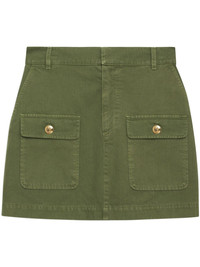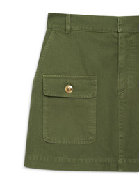Aliza cotton miniskirt Highlights - Olive green - Cotton - Belt loops - Concealed front fastening - Two side slash pockets - Two front flap pockets - Straight hem - Thigh-length Imported Composition Cotton 100% Washing instructions Read Manufacturer Guidelines