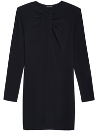 Amaya knot-detail minidress ANINE BING presents the Amaya dress, a mini-length silhouette finished with a crepe texture and matte finish. Imagines in a timeless all-black colourway, the minimalist design is punctuated with a knotted detail at the front, revealing a keyhole under the neckline. Highlights - Black - Crepe texture - Unlined - Knot detailing - Round neck - Keyhole neck - Shoulder pads - Long sleeves - Thigh-length - Straight hem Imported Composition Viscose 94%, Spandex/Elastane 6%