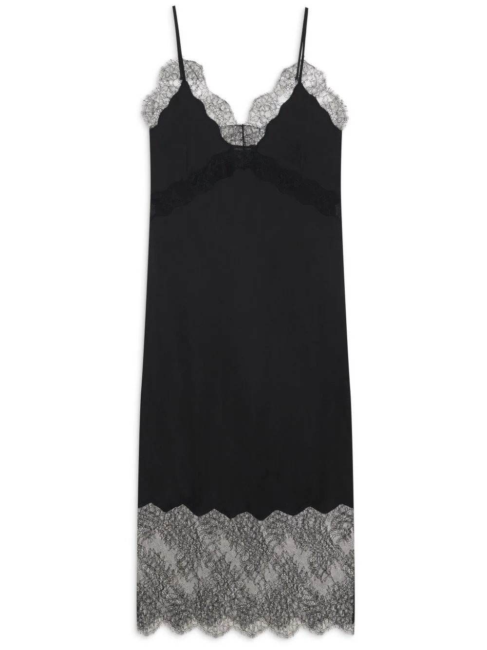 Amelie silk-blend midi dress Highlights - Black - Silk blend - Satin finish - Floral-lace detailing - V-neck - Sleeveless - Adjustable spaghetti straps - Calf-length Imported Composition Silk 52%, Rayon 48% SIZE & FIT Measurement LENGTH 45.27 in(115 cm) WAIST 29.92 in(76 cm) BUST 29.92 in(76 cm) Washing instructions Dry Clean Only