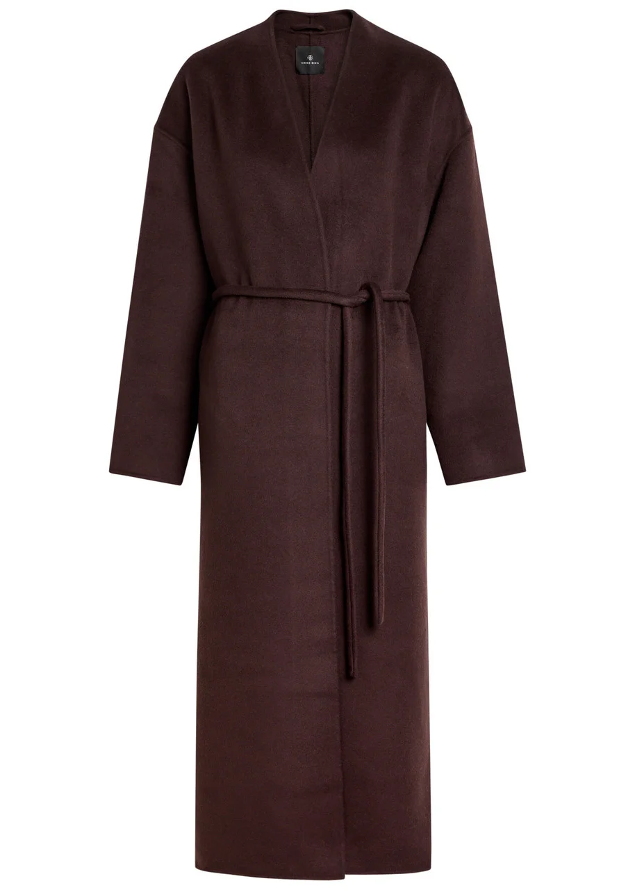 Anine Bing Hunter Belted Wool and Cashmere-blend Coat