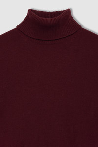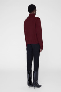 A timeless, everyday turtleneck featuring refined ribbing at the neck, cuffs, and hem in a deep cabernet. FIT + MEASUREMENTS Model is wearing a size S. Model Measurements: Height: 5'9", Bust: 30", Waist: 23", Hips: 34" Product Measurements (Size S): Length: 23", Bust: 19", Sleeve Length: 32.5" MATERIAL + CARE 90% Merino Wool 10% Cashmere Hand wash separately Made in China