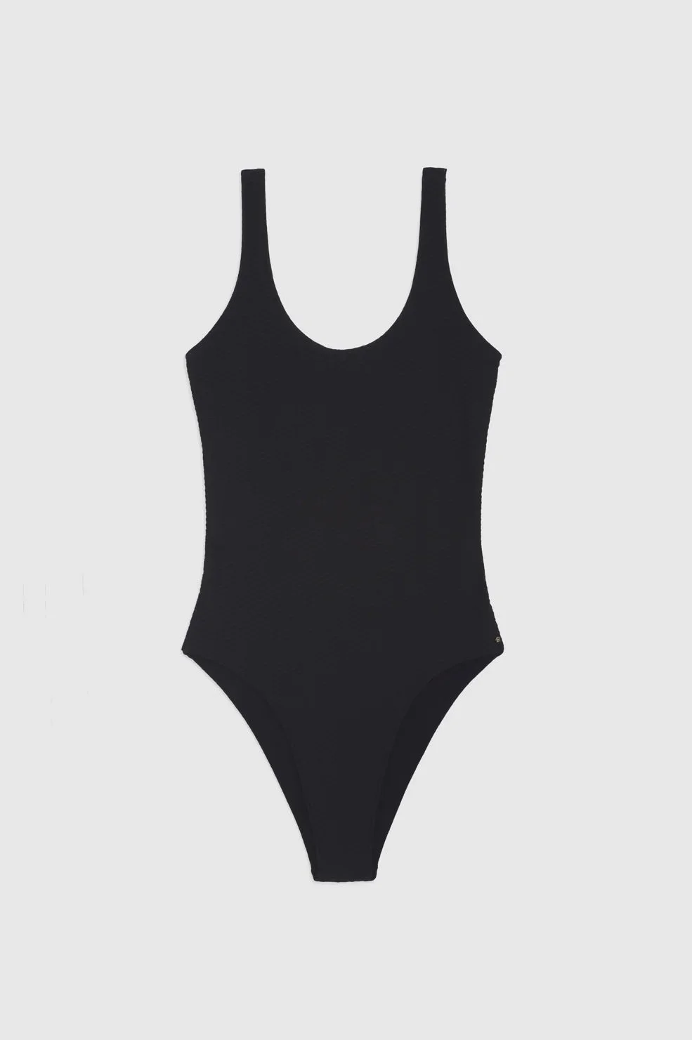 A timeless swimsuit featuring a universally flattering round neckline and low scoop back. The Jace One Piece is constructed from a fully-lined recycled nylon-spandex fabrication accented with honeycomb-inspired surface texture. The Jace One Piece is cut for a close, second-skin fit with modest coverage. Take your true size. FIT + MEASUREMENTS The Jace One Piece is cut for a close, second-skin fit with modest coverage. Take your true size. Model is wearing a size S. Model Measurements: Height: 5'9", Bust: 30", Waist: 23", Hips: 34" Product Measurements (Size S): Length: 26.5", Bust: 13", Waist: 11.5" MATERIAL + CARE 84% Recycled Nylon, 16% Spandex Hand wash Made in Indonesia