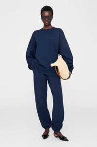 The Karter Jogger is a relaxed sweatpant made from midweight 100% cotton fleece in a dark navy wash. - Cotton fleece - Oversized fit - Low-to-mid rise - Elasticated waistband - Hidden interior drawstring - Relaxed leg - Ribbed elastic encasing at the leg openings - Side seam pockets - Tonal framed monogram embroidered at the chest Please note: This item is handcrafted and will vary in color or appearance. FIT + MEASUREMENTS Low-To-Mid Rise, Oversized Fit: Take your true size. Model is wearing a size S. Model Measurements: Height: 5'9", Bust: 30", Waist: 23", Hips: 34" Product Measurements (Size S): Inseam: 29.8", Rise: 11.8", Waist: 14", Hip: 21.8", Leg Opening: 5.3" MATERIAL + CARE 100% Cotton Machine wash separately Made in Turkiye
