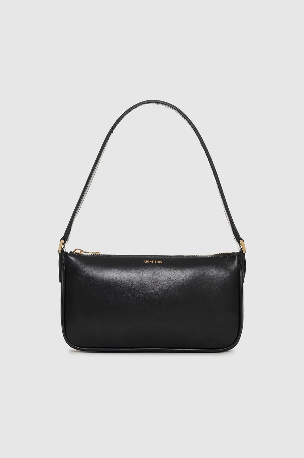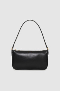A compact shoulder bag made from soft 100% leather in black with a slight sheen. - Leather - Fully lined cotton-twill interior - Gold top-zip closure - Padded shoulder strap - One interior slip pocket FIT + MEASUREMENTS Model Measurements: Height: 5'9.5", Bust: 32.5", Waist: 24.5", Hips: 35" Product Measurements: Height: 12.7", Width: 22.5", Depth: 3.9", Strap Length: 44.7" MATERIAL + CARE 100% Cow Leather Spot clean Made in Turkiye