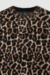 A cozy yet sophisticated layer crafted in a heavyweight cotton blend yarn finished with chunky, open-weave moss stitch detailing throughout. - Alpaca blend - Relaxed, oversized fit - Crew neckline - Long sleeves - Leopard intarsia FIT + MEASUREMENTS Relaxed, Oversized Fit: Take your true size, or one size down if a closer fit is preferred. Model is wearing a size S. Model Measurements: Height: 5'9", Bust: 30", Waist: 23", Hips: 34" Product Measurements (Size S): Length: 24.5", Bust: 24.5", Sleeve Length: 19.8" MATERIAL + CARE 32% Alpaca, 32% Wool, 30% Nylon, 6% Spandex Hand wash Made in China