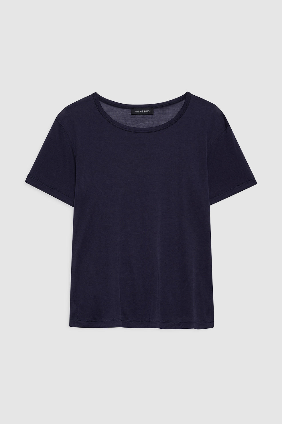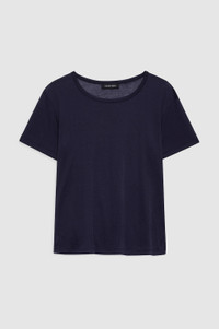 A short sleeve crewneck tee in a super fine, sheer jersey fabrication in midnight blue with a soft feel. - Wool-tencel blend - Close fit - Crew neckline - Short sleeves FIT + MEASUREMENTS Fitted Silhouette: Take your true size. Product Measurements (Size S): Length: 22.5", Bust: 16.5", Sleeve Length from Center Back: 31.5" MATERIAL + CARE 80% Tencel 20% Wool Machine wash Made in China