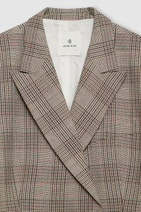 A fully constructed blazer crafted from a midweight, tuxedo wool blend suiting fabrication, featuring a slim hourglass fit with a notched collar, asymmetric profile and concealed button closure. - Wool blend - Branded jacquard lining - Single-breasted, concealed button closure - Notched collar - Padded shoulders - Long hemline - One welt pocket at the chest - Two welt pockets at the Hips: FIT + MEASUREMENTS Model is wearing a size S. Model Measurements: Height: 5'9", Bust: 30", Waist: 23, Hips: 33" Product Measurements (Size S): Length: 30", Bust: 38", Sleeve Length from Center Back: 33.5" MATERIAL + CARE 100% Wool Dry clean Made in Portugal