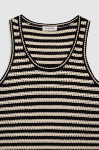 The Arie Dress is a warm-weather silhouette crafted from a midweight, slightly sheer cotton-viscose fabrication crocheted with horizontal stripe detailing. - Cotton-viscose blend - Relaxed, body-hugging fit - Scoop front neckline - Mini-length hem FIT + MEASUREMENTS Slim Fitted: Take your true size. Or, size up if a more relaxed fit is preferred. Model is wearing a size S. Model Measurements: Height: 5'7.5", Bust: 32", Waist: 23.5", Hips: 34.5" Product Measurements (Size S): Length: 32”, Bust: 16.5" MATERIAL + CARE 70% Organic Cotton, 30% Ecovero Viscose Hand wash Made in China
