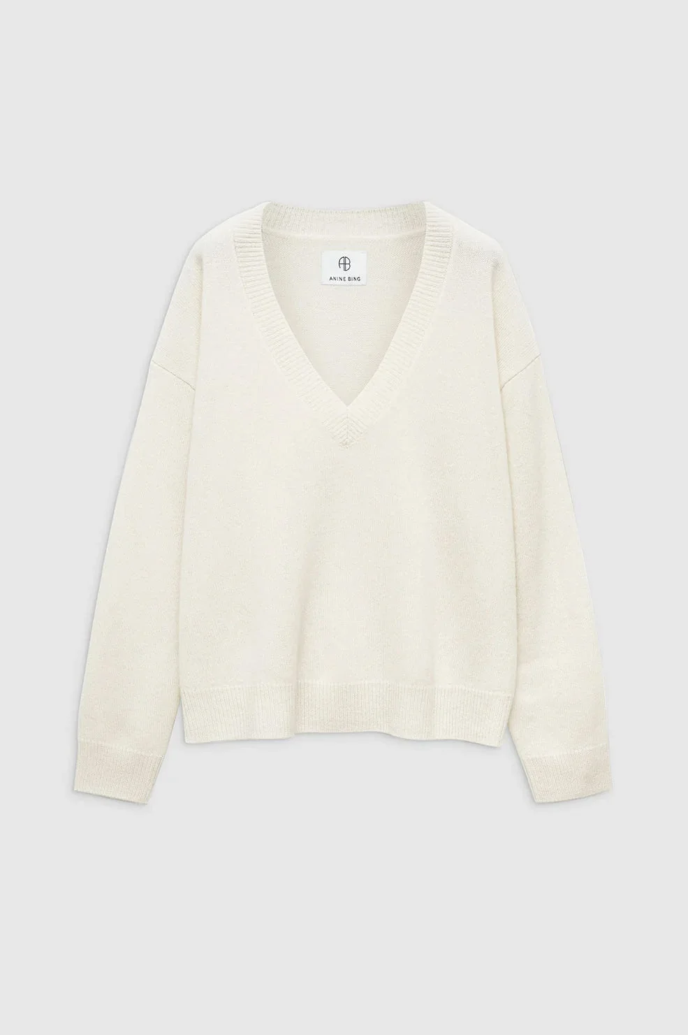 The Lee Sweater is a relaxed knit featuring an exaggerated deep V-neckline. This effortless layer is crafted in soft-yet-structured 100% cashmere with a slightly sheer appearance. The Lee Sweater is cut for a relaxed fit with long sleeves. Take your true size. FIT + MEASUREMENTS The Lee Sweater is cut for a relaxed fit with long sleeves. Take your true size. Model is wearing a size S. Model Measurements: Height: 5'10.5", Bust: 31", Waist: 24", Hips: 34" Product Measurements (Size S): Length: 23.5", Bust: 24.3", Sleeve Length from Center Back: 31.5" MATERIAL + CARE 100% Royal Cashmere Dry clean Made in China