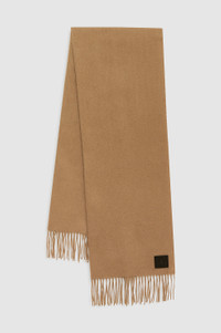 This classic scarf is made from a luxurious, 100% wool fabrication. This cozy accessory is accented with a single leather patch debossed with Anine Bing branding. FIT + MEASUREMENTS Model is wearing a size OS. Model Measurements: Height: 5'9", Bust: 30", Waist: 23, Hips: 33" Product Measurements: Length: 71.8", Width: 27.4" MATERIAL + CARE 100% Wool Dry clean Made in China