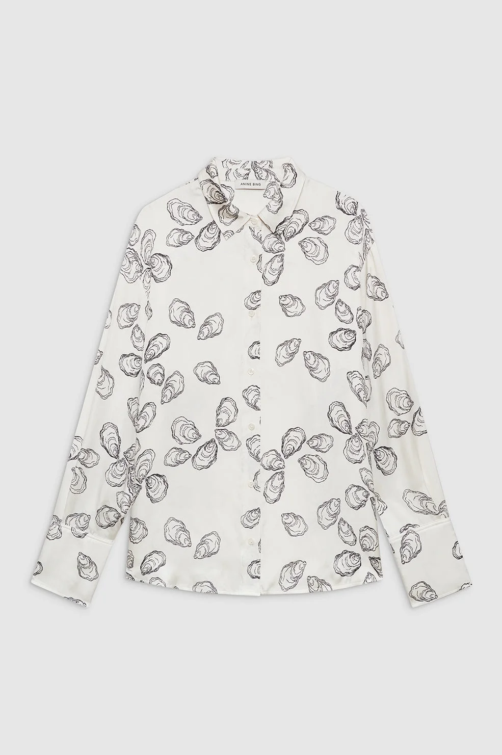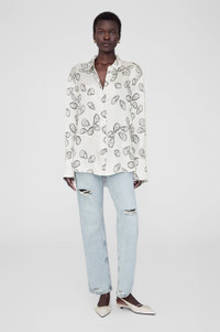 The Avalon Shirt is an oversized blouse crafted from a light and airy 21 mm double-faced silk charmeuse blend in an abstract oyster print. This flowy separate is finished with mother of pearl buttons down the center-front placket and wide cuffs. FIT + MEASUREMENTS The Avalon Shirt is cut for an oversized fit. Take your true size. Model is wearing a size S. Model Measurements: Height: 5'9", Bust: 32.5", Waist: 22.5", Hips: 34.5" Product Measurements (Size S): Length: 28.5", Bust: 48.8", Sleeve Length from Center Back: 34" MATERIAL + CARE 52% Silk, 48% Rayon Dry clean Made in China