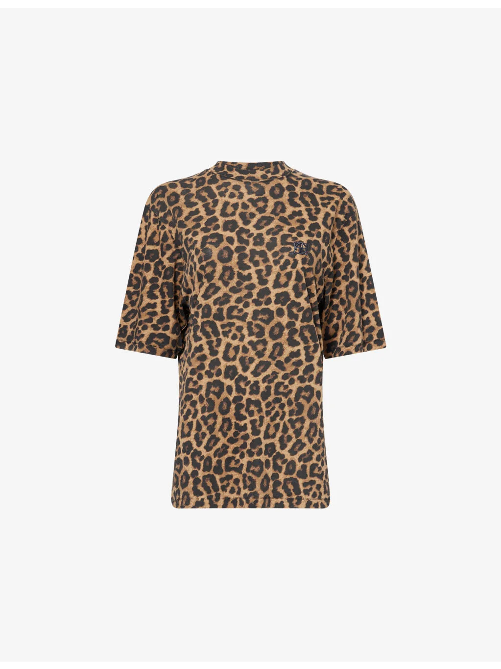 PRODUCT DETAILS - ANINE BING cotton t-shirt - 100% cotton - Relaxed boxy fit, round neck, short sleeves, all-over leopard print, embroidered emblem at chest - Machine wash at 30°C - Made in Turkey - True to size - Model is 5ft 10in/1.78m and wears a size small - Lightweight, stretchy Ref: R04580967