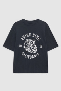 The Avi Tee Collegiate Leopard is an oversized, boxy T-shirt constructed from lightweight 100% cotton jersey in a faded black wash. It features a collegiate-inspired ANINE BING leopard graphic in white screen printed on the front. Please note: This item is individually handcrafted and will vary in color or appearance. The Avi Tee is cut for a boxy, oversized fit with a slightly longer body and slimmer neckline than the Wes Tee. Take your true size. FIT + MEASUREMENTS The Avi Tee is cut for a boxy, oversized fit with a slightly longer body and slimmer neckline than the Wes Tee. Take your true size. Model is wearing a size S. Model Measurements: Height: 5'9.5", Bust: 29.5", Waist: 23", Hips: 34.5" Product Measurements (Size S): Length: 25.8", Bust: 20", Sleeve Length: 10.6" MATERIAL + CARE 100% Cotton Machine wash Made in Turkiye