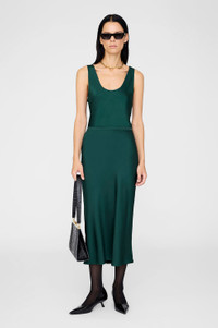 The best-selling Bar Silk Skirt in black is made from 100% double-faced silk charmeuse cut on a bias for a smooth silhouette that sits high at the waist and hugs the body through the hips. This style features an elasticated waistband for a comfortable, pull-on construction. The high-waisted, midi-length Bar Silk Skirt is cut for a close, streamlined fit. Take your true size. FIT + MEASUREMENTS Model is wearing a size S. Model Measurements: Height: 5'9.5", Bust: 32.5", Waist: 24.5", Hips: 35" Product Measurements (Size S): Length: 32", Waist: 27.5", Hip: 36" MATERIAL + CARE 100% Silk Dry clean Made in China