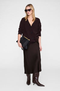The best-selling Bar Silk Skirt in brown is made from 100% double-faced silk charmeuse cut on a bias for a smooth silhouette that sits high at the waist and hugs the body through the hips. This style features an elasticated waistband for a comfortable, pull-on construction. The high-waisted, midi-length Bar Silk Skirt is cut for a close, streamlined fit. Take your true size. FIT + MEASUREMENTS Model is wearing a size S. Model Measurements: Height: 5'10", Bust: 30", Waist: 24, Hips: 33.5" Product Measurements (Size S): Length: 32", Waist: 27.5", Hip: 36" MATERIAL + CARE 100% Silk Dry clean Made in China