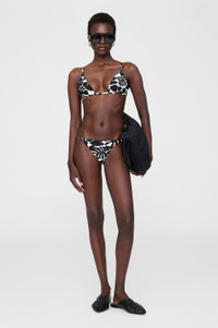 The Bellamy Bikini Bottom is constructed from a recycled nylon-spandex fabrication in an abstract bird of paradise print. - Nylon-spandex blend - Fully lined - Close fit - Low waistline - Modest coverage - Thin side straps - Hand-tacked monogram charm FIT + MEASUREMENTS Close Fit: Take your true size. Model is wearing a size S. Model Measurements: Height: 5'9", Bust: 30", Waist: 23", Hips: 34" Product Measurements (Size S): Cup Width: 4.5", Cup Height: 6" MATERIAL + CARE 85% Recycled Nylon, 15% Spandex Hand wash Made in Indonesia