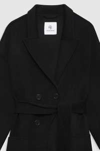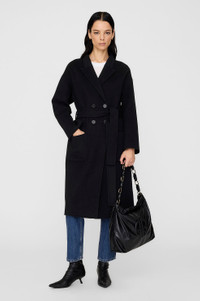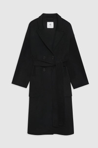A timeless wardrobe staple that is both practical and luxurious. The Dylan Coat is made from a soft, double-faced wool-cashmere heavyweight fabrication finished with traditional tailored details like a double-breasted closure and functional patch pockets. The Dylan Coat is cut for a relaxed and oversized fit. It includes a removable self-tie belt that can be wrapped tightly for a close, snug fit through the waist. Take your true size. FIT + MEASUREMENTS The Dylan Coat is cut for a relaxed and oversized fit. It includes a removable self-tie belt that can be wrapped tightly for a close, snug fit through the waist. Take your true size. Model is wearing a size S. Model Measurements: Height: 5'9.5", Bust: 32", Waist: 23.5", Hips: 34.5" Product Measurements (Size S): Length: 43.4", Bust: 44", Sleeve Length: 19.5" MATERIAL + CARE 90% Wool, 10% Cashmere Dry clean Made in China