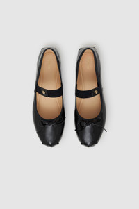 The Jolie Flats are crafted from shiny 100% patent leather with a flexible outsole. This ballet-inspired pair features a rounded toe, leather bow, and elastic strap for a secure fit. Accented with gold-tone ANINE BING hardware. Take your true size. If you are between sizes, we recommend taking the next size up. FIT + MEASUREMENTS Take your true size. If you are between sizes, we recommend taking the next size up. Model is wearing a size 37. Model Measurements: Height 5'9", Bust 30", Waist 23", Hips 34" Product Measurements (Size 37): Heel Height: 0.3", Sole Length: 9.8", Sole Width: 2.8" MATERIAL + CARE 100% Cow Leather Spot clean Made in Portugal