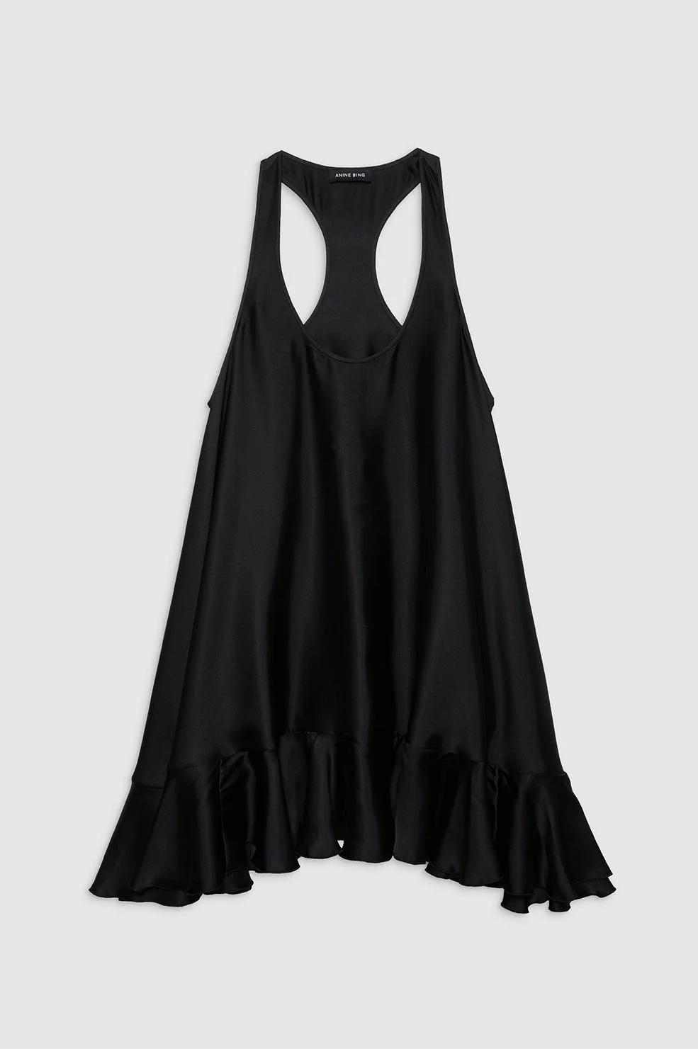 The Lilith Dress features a flowy, A-line silhouette crafted from a lightweight, 21 mm double-faced silk charmeuse blend. - Silk blend - Relaxed, flowy fit - U-shaped neckline - Racerback - Dropped armholes - Ruffled bottom panel - Mini-length hemline FIT + MEASUREMENTS Relaxed, Flowy Fit: Take your true size. Model is wearing a size S. Model Measurements: Height: 5'7.5", Bust: 32", Waist: 23.5", Hips: 34.5" Product Measurements (Size S): Length: 33”, Bust: 39.5" MATERIAL + CARE 56% Silk, 44% Rayon Dry clean Made in China